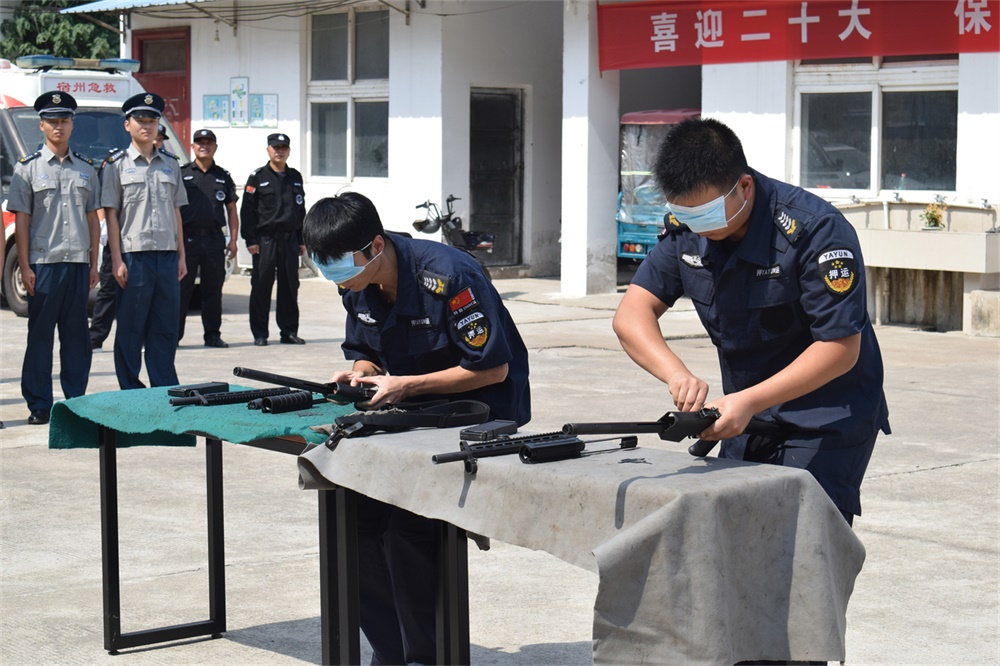 按照競(jìng)賽項(xiàng)目和賽程安排,公司參賽代表隊(duì)與各支參賽代表隊(duì)依次進(jìn)行了隊(duì)列技能、10*4往返跑、100米短跑、心肺復(fù)蘇及理論知識(shí)競(jìng)賽等多個(gè)項(xiàng)目的激烈角逐,共收獲一個(gè)第一名、一個(gè)第二名和兩個(gè)第三名的好成績(jī),公司也榮獲優(yōu)秀組織獎(jiǎng)。精彩紛呈的比賽過程充分展現(xiàn)了全市保安員過硬的職業(yè)技能和綜合素質(zhì),以及作為新時(shí)代保安員良好的精神風(fēng)貌。應(yīng)賽事組委會(huì)要求,公司代表隊(duì)還在競(jìng)賽活動(dòng)中向全市各保安服務(wù)企業(yè)展示了97-2式防暴槍蒙眼時(shí)盲拆解結(jié)合技能。